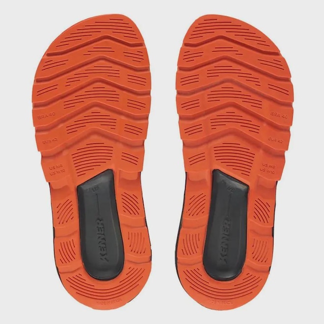 A Sandália Masculina Kenner Orak Preto e Laranja é o tipo de sandália que não anda, desfila. Inspirada no design automotivo, ela traz uma pegada futurista com aerodinâmica afiada e uma peça amortecedora inédita no solado tipo suspensão de carro esportivo, só que pros seus pés. Ela tem visual agressivo e elegante, com pontos de ar estratégicos, garantindo equilíbrio, segurança e aquele conforto que te faz esquecer que tá de chinelo. Ref.: 1901022100-6