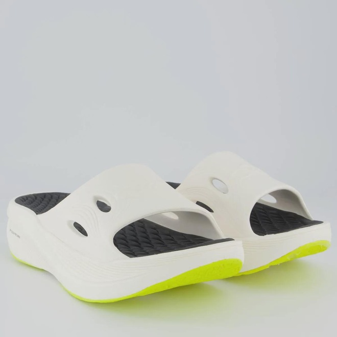 TecnologiasEleva Pro Max: Aplicada ao chinelo, garante amortecimento superior, leveza e conforto extremo, ideal para o pós-treino. Proporciona alívio imediato aos pés, favorecendo a recuperação com maciez e absorção de impacto a cada passo.Eleva+: Tecnologia que explora o limite de expansão do EVA para alcançar máxima resposta, proporcionando o efeito trampolim, absorvendo o impacto da passada e transformando essa energia em impulsão.Gripper: Solado com borracha compactada para maior aderência e durabilidade.Gênero: MasculinoOrigem: NacionalTira: Única e largaComposição tira: EVAComposição: 100% EVACor predominante: BrancoPeso aproximado: 440g o par n° 39/40