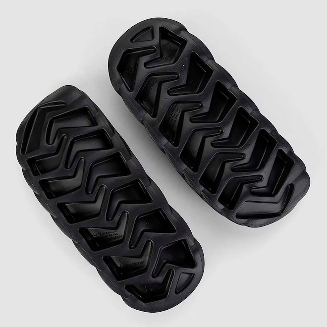 Solado com 3,5cm de altura aproximadamente, os cantos são ligeiramente ressaltados para melhor acomodar os pés