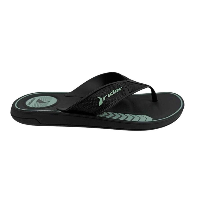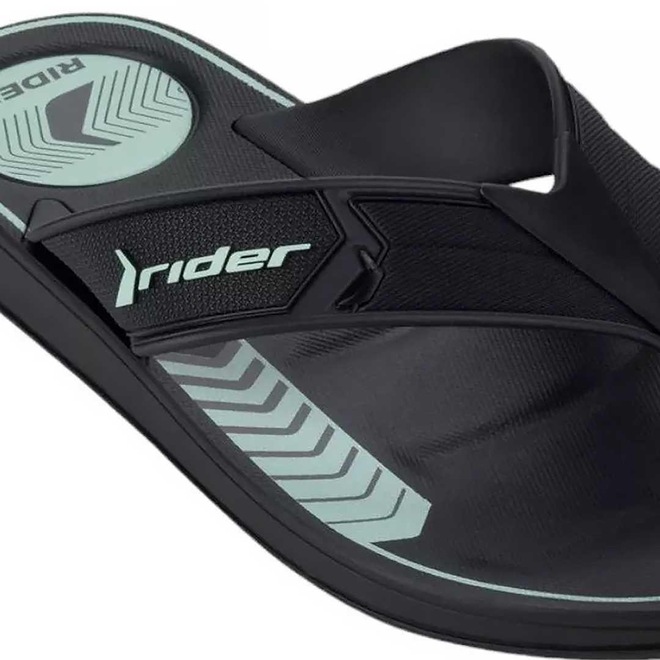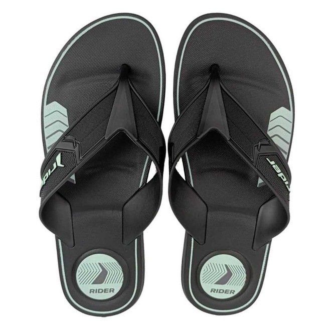 Confeccionaod em material emborrachado pvc, um material sintético que é leve e resistente. Saplmilha confortável, com textura antideslisante e soaldo com frisos. Tira superior reforçada e marca rider. Uma coleção com combinações variadas.