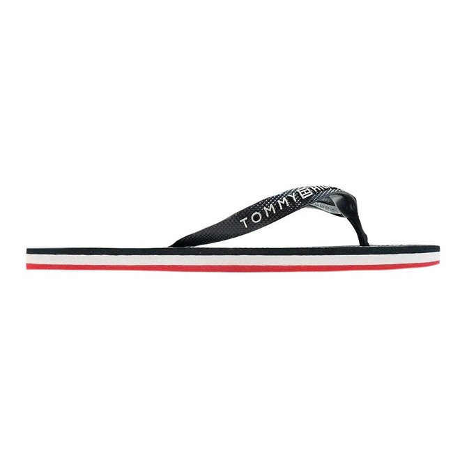 Chinelo Tommy Hilfiger de tiras na cor azul marinho com solado em vermelho, confeccionado em EVA de alta qualidade e durabilidade, palmilha macia com nome da marca estampado em cor contrastante, apresenta tira em borracha com nome da marca em alto relevo e superfície texturizada, sola antiderrapante emborrachada, na cor azul, com nome "TOMMY HILFIGER" da marca em alto relevo e super confortável, é ideal para ser usado em praias, piscinas e em dias quentes.