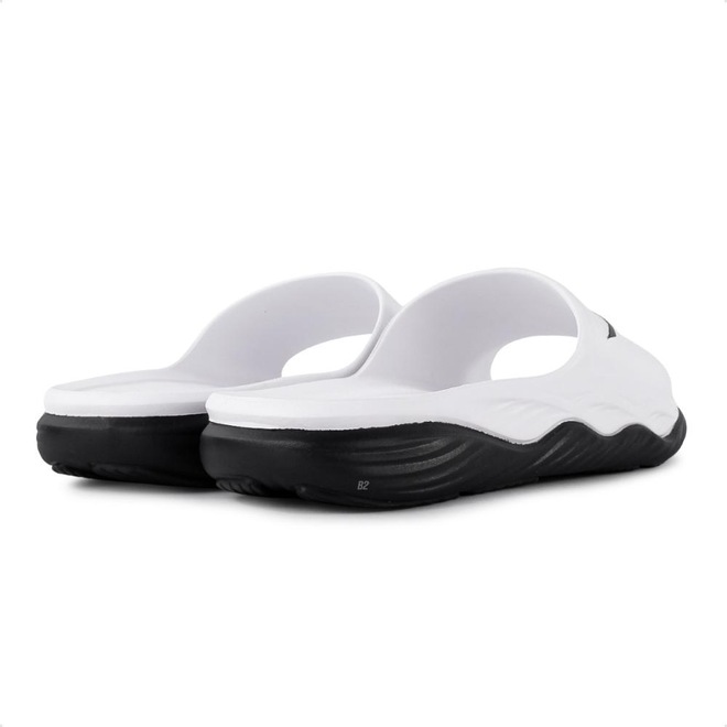 O design é clean e minimalista, com o logo da Mizuno destacado. Solado em EVA possui ranhuras que proporcionam maior aderência e estabilidade ao caminhar.