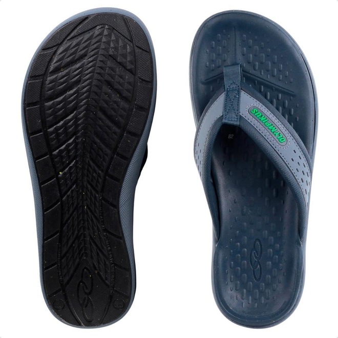 O Chinelo Olympikus 921 tem tira em laminado sintétic, com aplicação de etiqueta emborrachada bicolor.