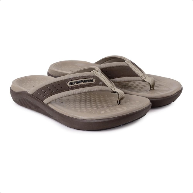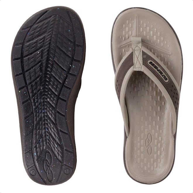 O Chinelo Olympikus 921 tem tira em laminado sintétic, com aplicação de etiqueta emborrachada bicolor.