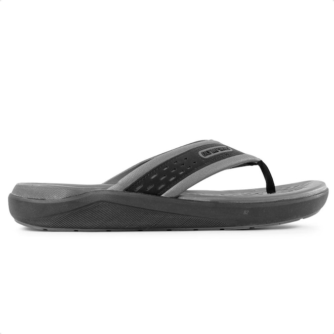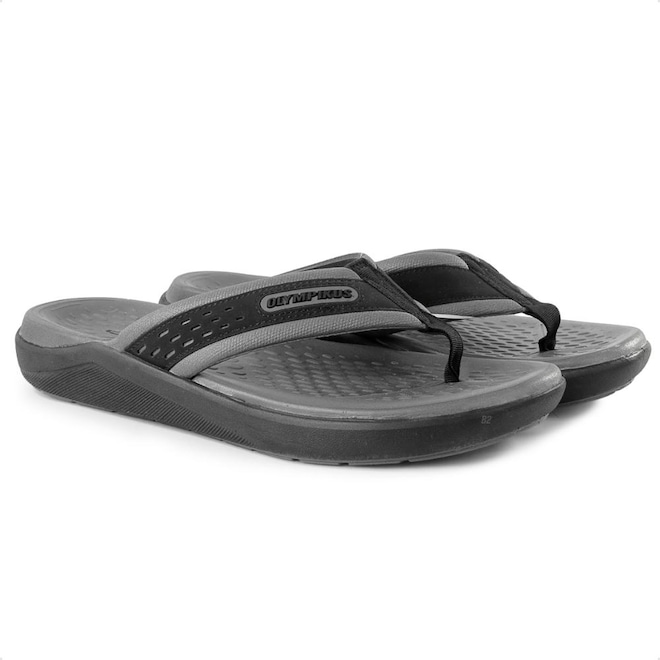 O Chinelo Olympikus 921 tem tira em laminado sintétic, com aplicação de etiqueta emborrachada bicolor.