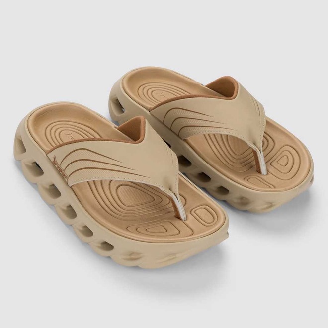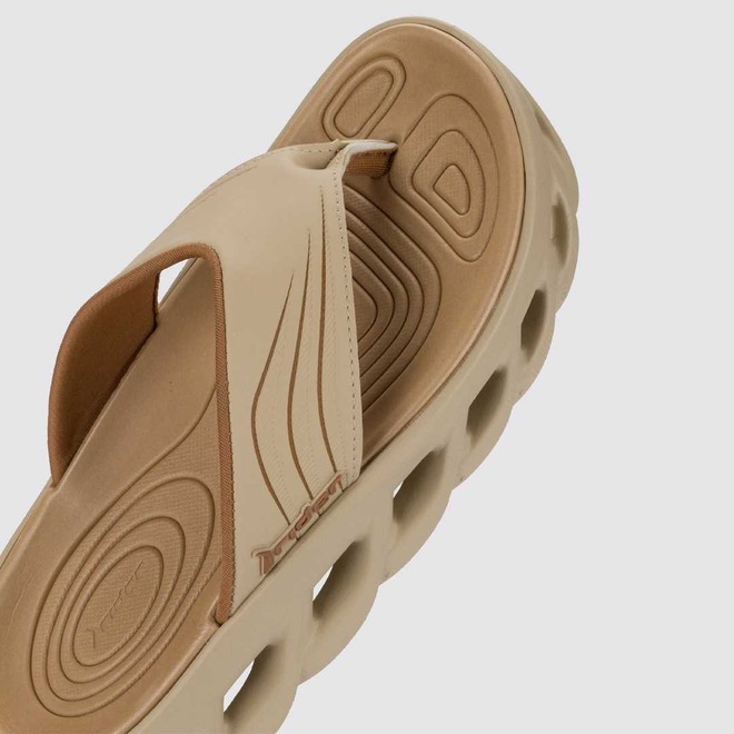 A construção têxtil da gáspea, com forro e preenchimento de espuma, mostra sinergia com leveza e conforto propostos pela versão slide do produto.A palmilha, que traz a anatomia como ponto forte, reforça o conforto desse produto, trazendo um toque de irreverência através das linhas que formam a marcação do pé.Além disso, as linhas da dedeira seguem a linguagem de movimento e fluidez presente na sola, que traz esse visual é inspirado pelos sneakers de corrida, comunicando o conforto e o caráter esportivo do produto e também trazendo sinergia e dinamismo para o produto.