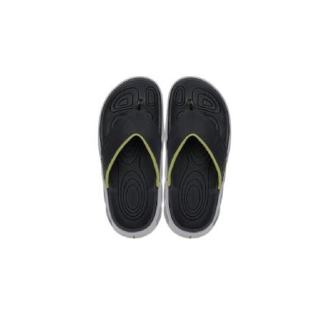 A construção têxtil da gáspea, com forro e preenchimento de espuma, mostra sinergia com leveza e conforto propostos pela versão slide do produto.A palmilha, que traz a anatomia como ponto forte, reforça o conforto desse produto, trazendo um toque de irreverência através das linhas que formam a marcação do pé.Além disso, as linhas da dedeira seguem a linguagem de movimento e fluidez presente na sola, que traz esse visual é inspirado pelos sneakers de corrida, comunicando o conforto e o caráter esportivo do produto e também trazendo sinergia e dinamismo para o produto.