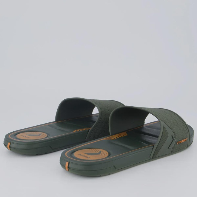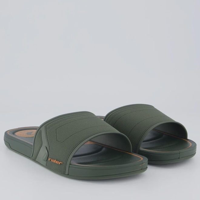 Composição tira: Material sintético Cor predominante: Verde Solado: 100% borracha Composição: Borracha Gênero: Masculino Origem: Nacional Tira: Unica e larga Peso aproximado: 470g o par n° 40