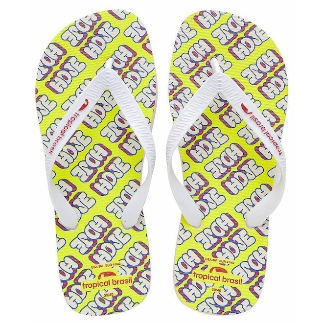 Chinelo Tropical Brasil Frases Flip Flop Tropical BrasilA exuberância da natureza sempre nos surpreende, e você encontra parte dela nos Chinelos Tropical Brasil. Prepare-se para o Verão com os Chinelos Tropical, aliando conforto com estilo.