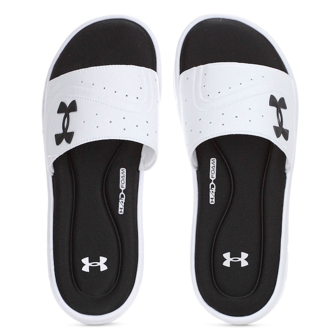 Conforto que você sente no primeiro passo! Chinelo Under Armour Slide Ignite Select Branco e Preto - Masculino Ficha Técnica: Marca: Under Armour Cor: Branco com detalhes em preto Cabedal: Sintético Gênero: Masculino Palmilha: Performance 4D Foam® com dupla camada de espuma Sola: EVA com relevos de tração no calcanhar Entressola: EVA leve para melhor amortecimento e conforto Tira: Slide - Sintética com espuma extra no lado interno Amortecimento: Leve e confortável Estabilidade: Neutro Tecnologias: 4D Foam® - espuma de alta absorção de impacto que se adapta aos pés Indicação: Uso diário e momentos de descanso Detalhes: Logo da marca na tira superior Conforto absoluto para seus pés começa aqui! O Chinelo Under Armour Slide Ignite Select é ideal para quem não abre mão de bem-estar no dia a dia. Porque investir: Seu solado em EVA garante amortecimento leve e eficaz, enquanto a palmilha 4D Foam® com dupla camada se molda ao pé, proporcionando uma sensação de maciez única. A tira fixa com espuma interna garante ajuste suave e seguro, tornando-o perfeito para momentos de descanso ou pós-treino. Conteúdo da embalagem: 1 par de Chinelo Under Armour Slide Ignite Select Branco e Preto - Masculino