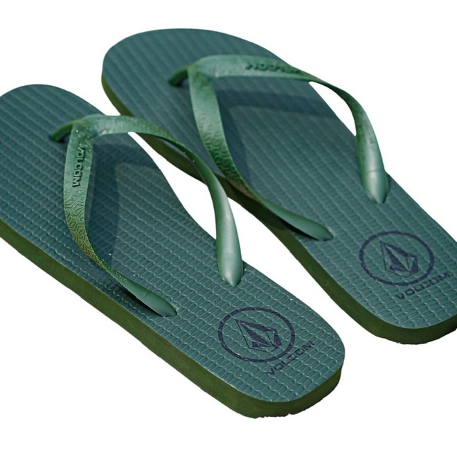 Chinelo Volcom Rocker. Possui solado em EVA com borracha, tira em composto de PVC, assinatura Volcom em alto relevo na tira, logo Volcom Stone personalizado em baixo relevo e silk Circle Stone no solado.
