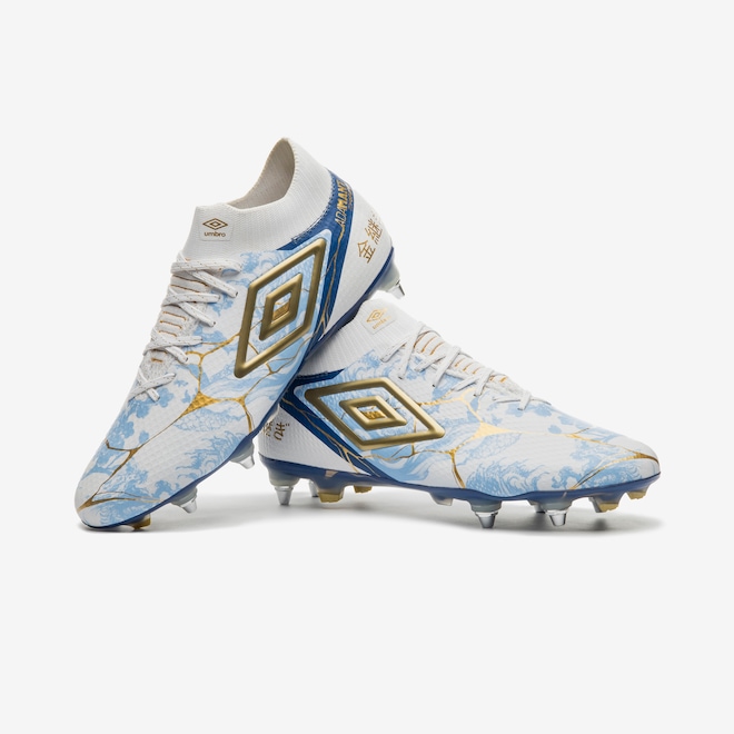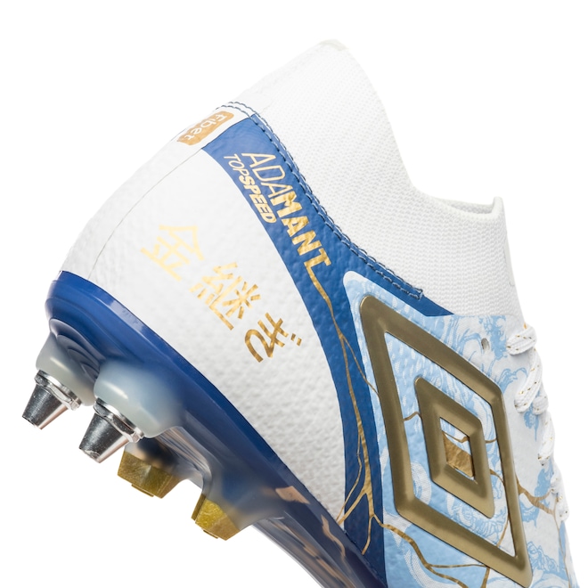 Eleve sua performance em campo com a Chuteira de Campo Adulto Umbro Adamant Top Speed Pro Kintsugi .