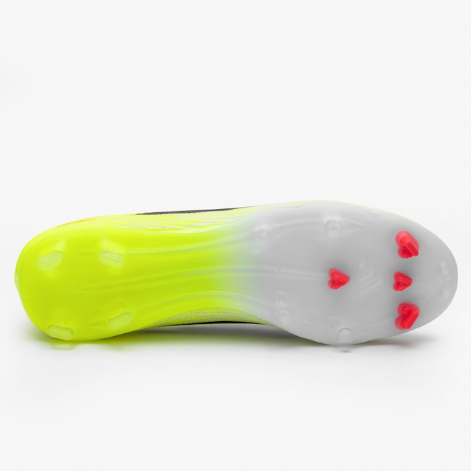 O cabedal em Fiberskin oferece ajuste firme e confortável, mantendo o pé bem estabilizado para movimentos rápidos, enquanto a aplicação da tecnologia Sprintgrid cria zonas estratégicas que auxiliam no controle de bola em alta velocidade, garantindo mais precisão em passes, domínios e finalizações mesmo nas jogadas mais intensas.