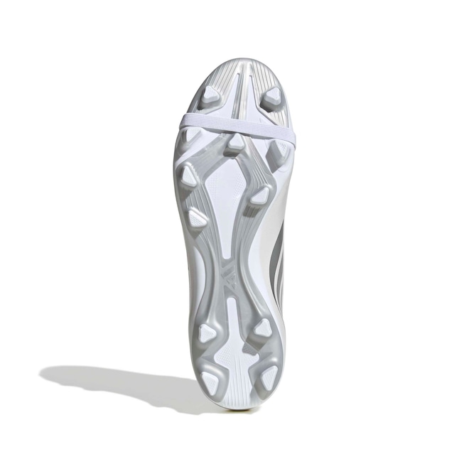 O cabedal sintético oferece um toque de bola preciso, enquanto o solado em TPU com travas fixas e altas garante tração explosiva e estabilidade superior.