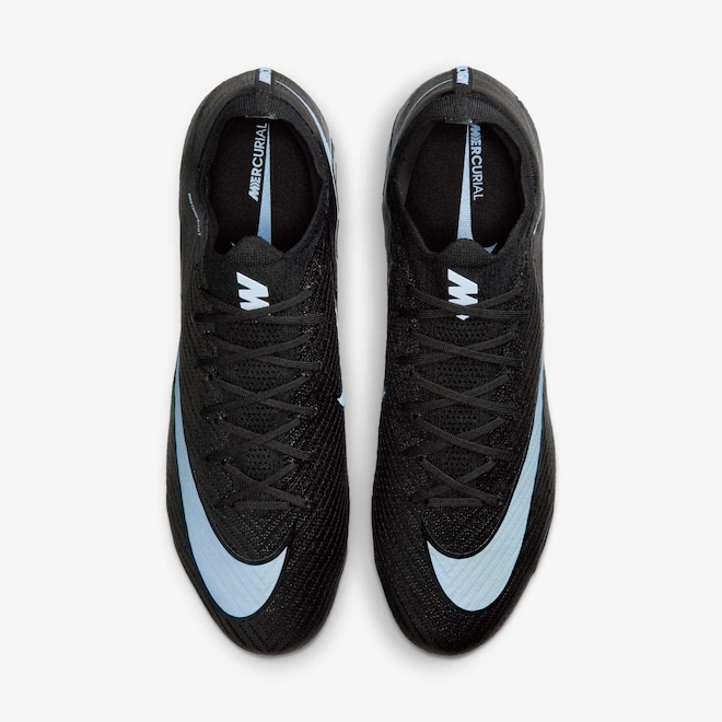 A parte de cima em Flyknit, projetada para os jogadores mais rápidos do esporte, oferece um ajuste tipo meia. Ela foi combinada com Gripknit para criar a Mercurial com a parte de cima mais fina até hoje, deixando você mais perto da bola e diminuindo o tempo que leva para lacear.