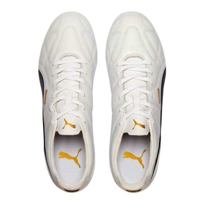 Eleve o nível do jogo com a nova chuteira puma king para superfícies firmes. Fiel ao seu design original, o novo modelo traz material resistente para controle absoluto de bola. Já a sola ultra Leve de TPU vem para mostrar quem está pronto para o jogo.