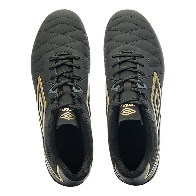 Seu cabedal é construído em material laminado com aplique de alta-frequência, detalhe diferenciado no Diamante Umbro e costura programada na parte frontal, preservando esse detalhe clássico e combinando com serigrafia e detalhe de textura gráfica.