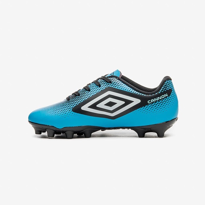 - Sobre o produto - Chuteira de Campo Umbro Cannon - InfantilIndicada para os jogadores mirins iniciantes, a Chuteira Campo Umbro Cannon Jr segue o mesmo design autêntico e ousado do modelo adulto, produzida em material de fácil limpeza e manutenção. O modelo exibe artes gráficas personalizadas em cores vibrantes que adicionam o melhor do estilo Umbro aos seus treinos e partidas. Seu cabedal é construído em material sintético laminado com aplicação de grafismo reticulado e forro em tecido de poliéster. Possui Diamante Umbro na lateral estilizado com a assinatura do modelo, atacador convencional e palmilha interna em EVA forrado. O solado de campo FG de 14 travas é construído em PVC.- ref: M15NBT