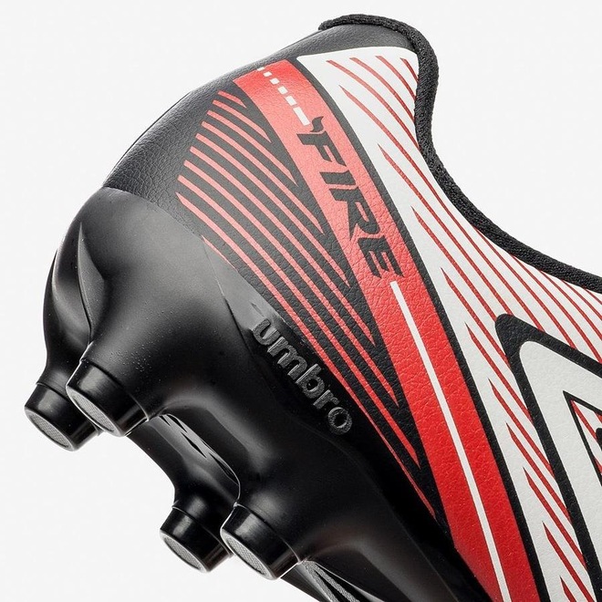 - Sobre o produto - Chuteira de Campo Umbro Fire - AdultoIndicada para jogadores iniciantes, a Chuteira para Campo Umbro Fire apresenta visual marcante com cores contrastantes e arte gráfica. O cabedal laminado tem textura frontal para melhor controle da bola, e o solado FG de 14 travas em PVC oferece durabilidade e aderência. Possui forro em poliéster e aplique de alta frequência.- ref: M156OU