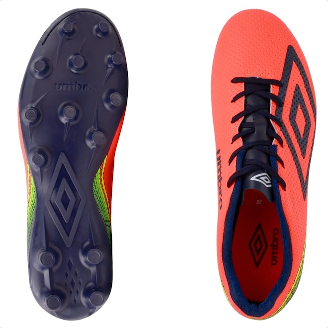 A Chuteira Campo Umbro Force exibe um design despojado com degradê e bloco de cores!