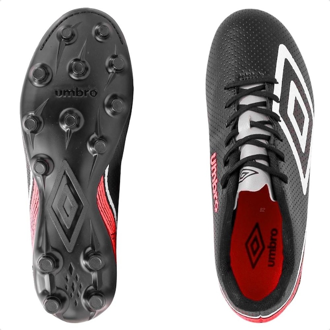 A Chuteira Campo Umbro Force exibe um design despojado com degradê e bloco de cores!