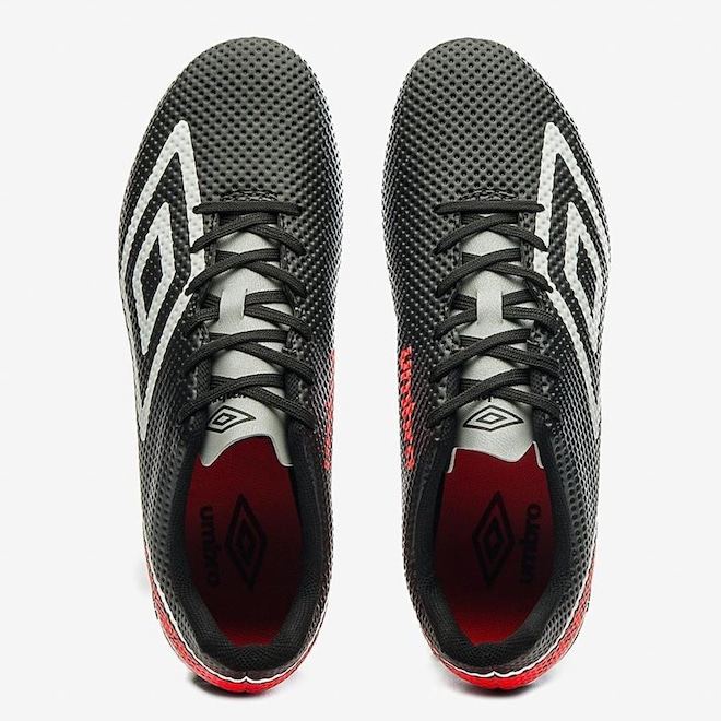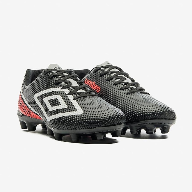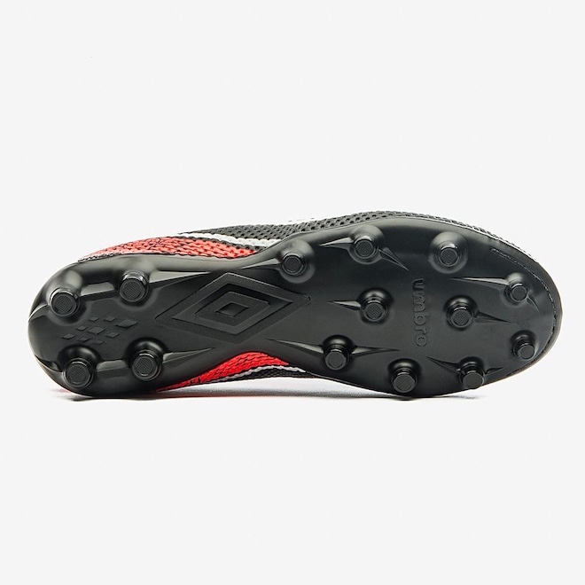 A Chuteira Campo Umbro Force exibe um design despojado com degradê e bloco de cores. Indicada para jogadores iniciantes, ela traz textura integral e entrega de grip em toda a área da gáspea, o que auxilia o controle direcional dos chutes e dribles. Cabedal assimétrico construído em material laminado com aplique em cilindro de baixo relevo, que confere textura integral e maior grip ao entrar em contato com a bola, e forro em tecido de poliéster. Possui arte gráfica em estampa perfurada, Diamante Umbro aplicado na parte frontal, assinatura do modelo estilizada na parte posterior com contraste de cores, atacador convencional e palmilha interna em EVA forrado. O solado de campo FG de 14 travas, com design minimalista, é composto por PVC e conta com costura de reforço frontal para maior durabilidade.ref: M13EDZ