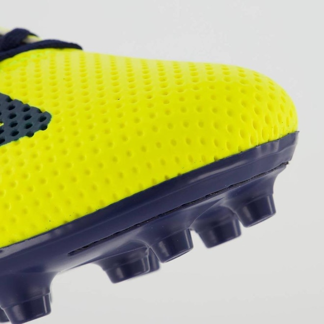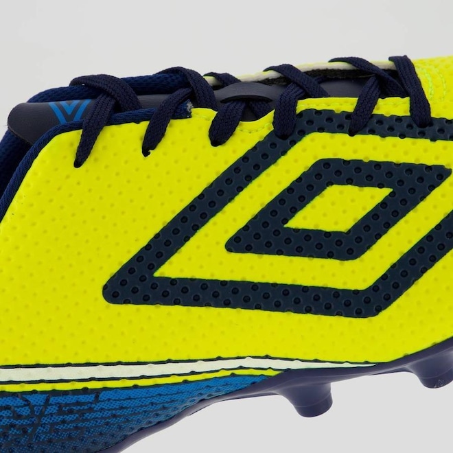 A Chuteira Campo Umbro Force exibe um design despojado com degradê e bloco de cores. Indicada para jogadores iniciantes, ela traz textura integral e entrega de grip em toda a área da gáspea, o que auxilia o controle direcional dos chutes e dribles. Cabedal assimétrico construído em material laminado com aplique em cilindro de baixo relevo, que confere textura integral e maior grip ao entrar em contato com a bola, e forro em tecido de poliéster. Possui arte gráfica em estampa perfurada, Diamante Umbro aplicado na parte frontal, assinatura do modelo estilizada na parte posterior com contraste de cores, atacador convencional e palmilha interna em EVA forrado. O solado de campo FG de 14 travas, com design minimalista, é composto por PVC e conta com costura de reforço frontal para maior durabilidade.ref: M13EDZ