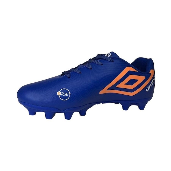 Indicada para jogadores iniciantes, a Chuteira de Campo Umbro Orbit - Infantil exibe um design autêntico e contemporâneo com grafismos exclusivos que trazem linhas orgânicas em movimento. Perfeita para inspirar você a alcançar o seu melhor desempenho dentro das quatro linhas. Cabedal confeccionado em material laminado com design inspirado no modelo Adamant. Possui aplicação de grafismo exclusivo em serigrafia com duas cores, Diamante Umbro inclinado em destaque na lateral, assinatura Orbit na parte frontal e palmilha macia em EVA com poliéster forrado. O solado de campo FG de 14 travas é construído em PVC com costura de reforço na parte frontal.ref: M11V2X