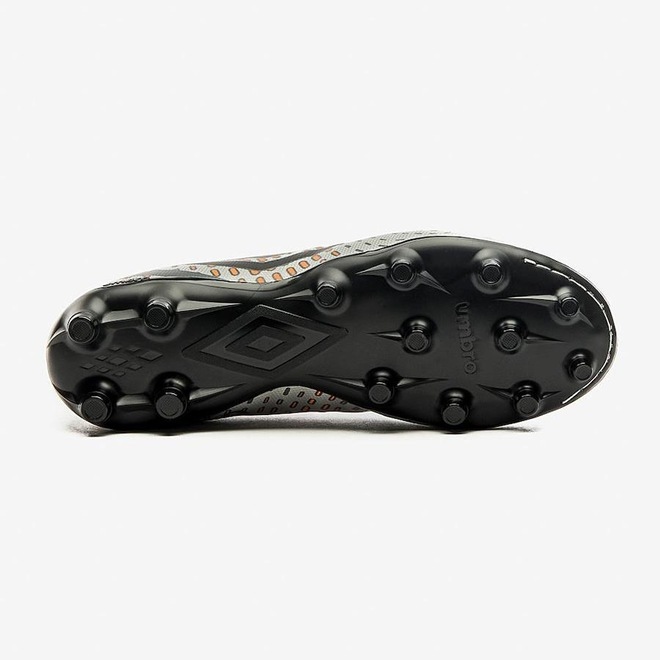 A Chuteira Campo Umbro Plasma exibe um visual arrojado com efeito degradê e grafismos autênticos. O material texturizado presente no cabedal proporciona maior controle de bola dentro de campo. Cabedal (parte superior do calçado) construído em material sintético texturizado com acabamento laminado. Possui serigrafia de arte gráfica personalizada em degradê com sobreposição de três cores, Diamante Umbro na lateral, forro em poliéster e macia palmilha em EVA com forração de tecido. O solado de campo FG de 14 travas é em PVC monocromático, que mantém o pé firme durante as manobras e dribles, com costura de reforço frontal. ,,GRAFITEref: M113U3