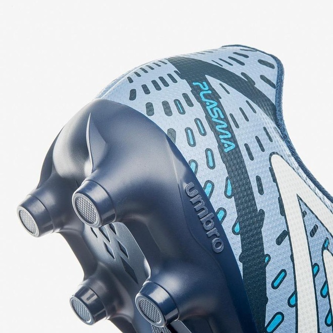 A Chuteira Campo Umbro Plasma exibe um visual arrojado com efeito degradê e grafismos autênticos. O material texturizado presente no cabedal proporciona maior controle de bola dentro de campo. Cabedal (parte superior do calçado) construído em material sintético texturizado com acabamento laminado. Possui serigrafia de arte gráfica personalizada em degradê com sobreposição de três cores, Diamante Umbro na lateral, forro em poliéster e macia palmilha em EVA com forração de tecido. O solado de campo FG de 14 travas é em PVC monocromático, que mantém o pé firme durante as manobras e dribles, com costura de reforço frontal. ,,GRAFITEref: M113U3