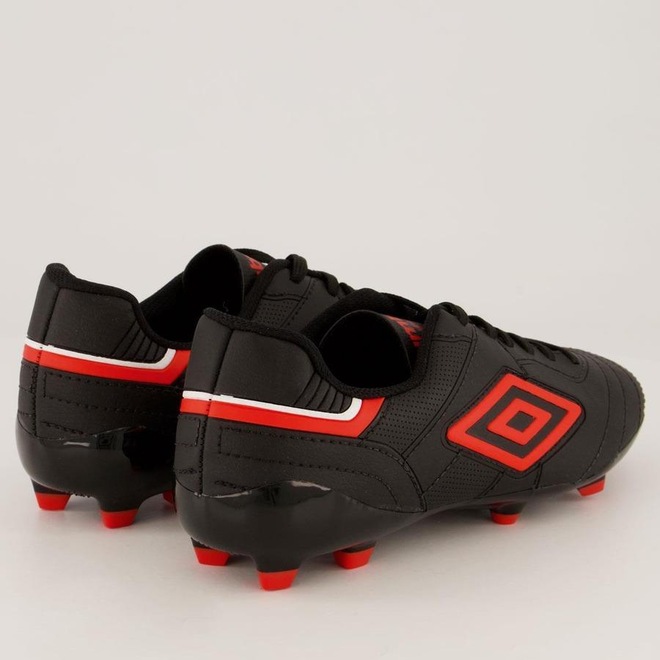 Já o solado da Chuteira Umbro Speciali III é em TPU com travas altas e fixas que ajudam na estabilidade e aderência nos gramados.