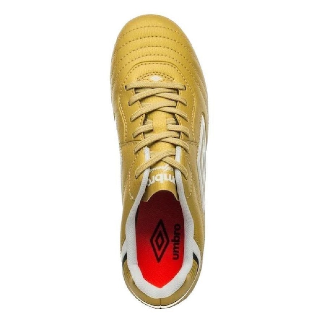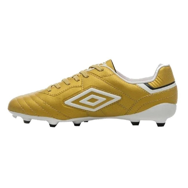Já o solado da Chuteira Umbro Speciali III é em TPU com travas altas e fixas que ajudam na estabilidade e aderência nos gramados.