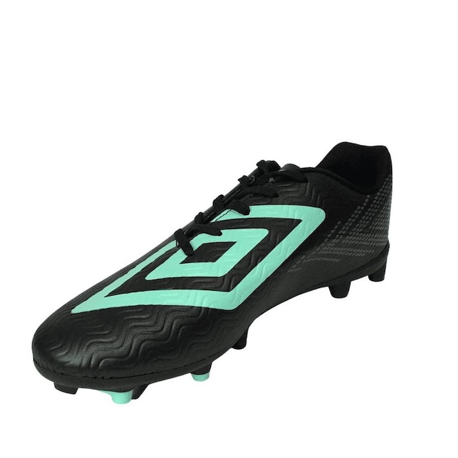 O cabedal é assimétrico, construído em material laminado com textura integral e design gráfico com o diamante umbro em destaque frontal e duas cores de serigrafia.