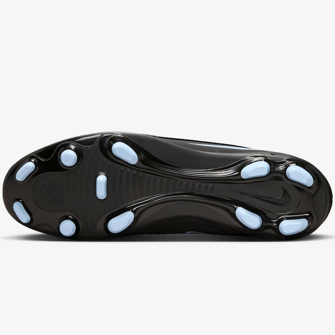 Com cabedal sintético durável e forro têxtil acolchoado, ela oferece conforto excepcional e toque preciso na bola. A lingueta fina e flexível, junto à amarração por cadarço, garante ajuste perfeito. As travas fixas em PU proporcionam estabilidade e agilidade essenciais para dribles e arrancadas.