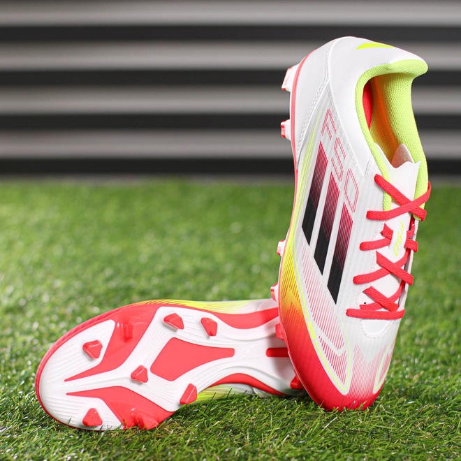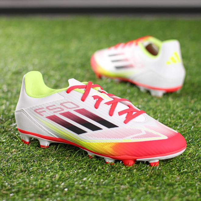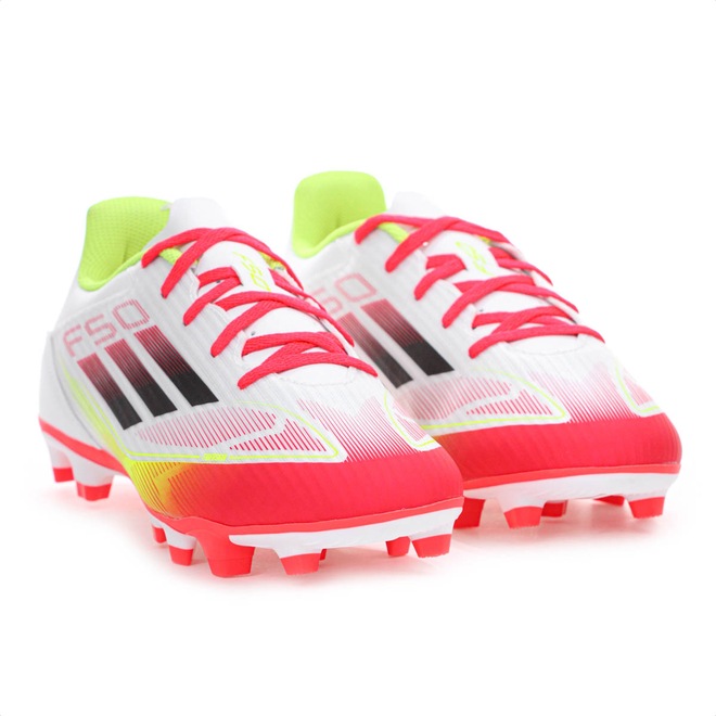 Velocidade, leveza e controle em qualquer campo! Chuteira Adidas Campo F50 Club FG/MG Branco Vermelho e Verde - Masculino Ficha Técnica: Marca: Adidas Cor: Branco, vermelho e verde Cabedal: Sintético com suporte Fiberskin; em recortes e texturizado Gênero: Masculino Palmilha: Têxtil Sola: Borracha com travas FG/MG para múltiplas superfícies Lingueta: Perfurada Fechamento: Cadarço Indicação: Jogos em campos naturais e grama artificial Detalhes: Logotipo Adidas nas laterais e calcanhar; design moderno e aerodinâmico Ultrapasse limites com a Chuteira Adidas F50 Club FG/MG! Leve, confortável e feita para velocidade, ela garante suporte com o cabedal em Fiberskin e frescor com sua língua perfurada. Porque investir: O solado multissuperfície oferece tração em gramados naturais e sintéticos, tornando você imparável em qualquer terreno. Ideal para quem joga com intensidade e estilo. Conteúdo da embalagem: 1 par de Chuteira Adidas Campo F50 Club FG/MG Branco Vermelho e Verde - Masculino