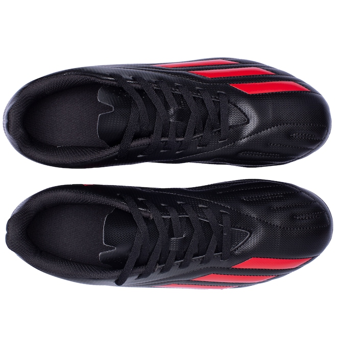 A chuteira de campo conta com forro têxtil e reforço acolchoado no calcanhar que garante maior proteção.
