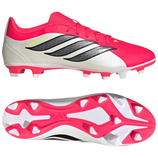 Encontre sua forma e comande o campo de futebol com a Chuteira Campo Predator Club, desenvolvida para jogadores que se dão bem sob pressão. Traga controle e potência para o seu jogo e faça cada chute valer a pena. A tecnologia PowerSpine está integrada a um novo design de alto desempenho, criado para ajudar você a dar os chutes mais fortes. Ela reforça a estabilidade no meio do pé, apoiando o equilíbrio e a potência sem comprometer o conforto. Criada com a tecnologia Nanostrike, a malha elástica inovadora proporciona maciez e um toque leve. Uma sobreposição tátil integrada também ajuda a aumentar a precisão do chute. A língua flutuante com cadarço facilita a entrada e o ajuste para que você tenha sempre um caimento personalizado. Seja no campo ou em multissuperfície, estas chuteiras são a chave para atingir as suas metas. Jogue com determinação com estas chuteiras e veja o que acontece quando você combina a tecnologia adidas com sua confiança elevada.