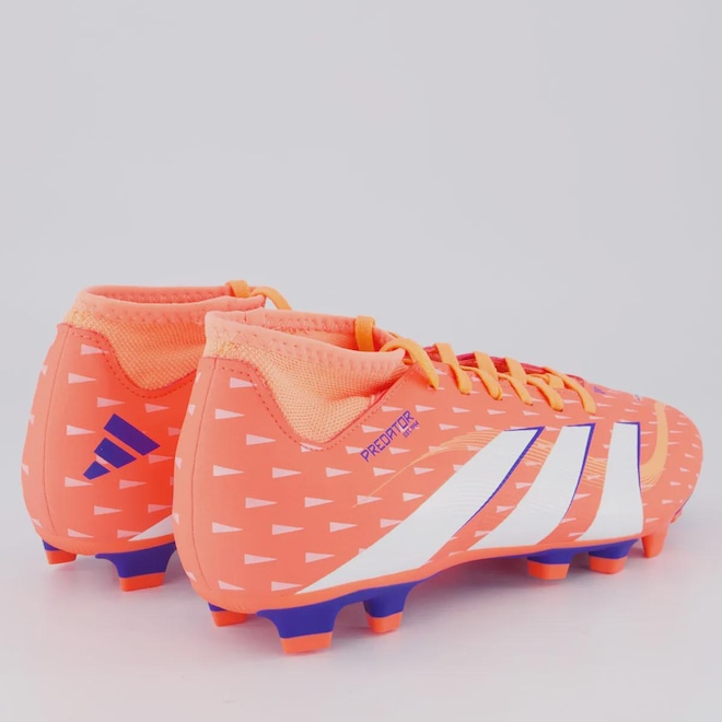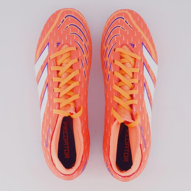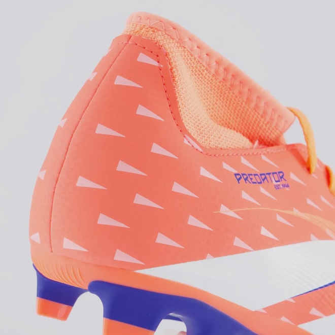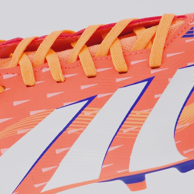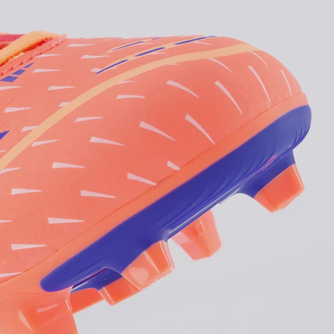 Tecnologia Strikescale: Barbatanas aderentes na parte do meio do cabedal para melhor impacto. Composição cabedal (parte superior): Produxido em material sintético texturizado Palmilha: EVA forrada e removível; facilita na higienização do produto Solado: TPU com travas altas, fixas e multidirecionais, colado Forro: Material têxtil levemente acolchoado Cor predominante: Laranja Indicado para: Campo Lingueta: Integrada Origem: Importada Gênero: Masculino Ajuste: Cadarço Peso aproximado: 500g o par n° 40