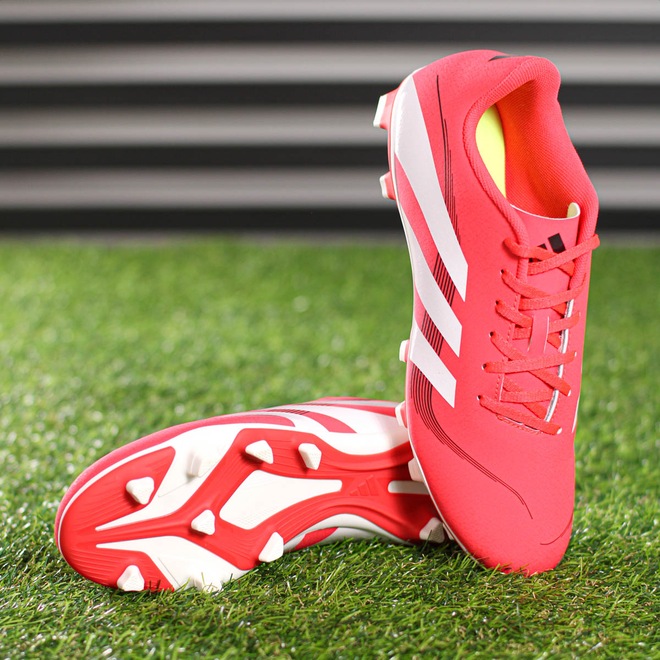 Domine o campo com precisão e estilo! Chuteira Adidas Campo Predator Essentials 25.5 Rosa e Branco - Masculino Ficha Técnica: Marca: Adidas Gênero: Masculino Cor: Rosa e branco Forma: Padrão Fecho: Cadarço Indicado: Futebol de campo Cabedal: Sintético leve e resistente Solado: Firme/multissuperfície Amortecimento: Leve Estabilidade: Alta para movimentos rápidos e mudanças de direção Tecnologias: Solado multissuperfície para diversos tipos de gramado Detalhes: Estilo icônico Predator com visual moderno e agressivo e icônicas três listras nas laterais Seja o destaque da partida com a chuteira Adidas Predator Essentials 25.5. Criada para jogadores que querem marcar presença em qualquer tipo de campo, ela entrega estabilidade e tração com seu solado versátil. Porque investir: O cabedal sintético é leve e oferece ajuste firme para máximo controle da bola. Além do desempenho, o design rosa com branco mostra sua personalidade dentro das quatro linhas. O estilo Predator nunca passa despercebido! Conteúdo da embalagem: 1 par de Chuteira Adidas Campo Predator Essentials 25.5 Rosa e Branco - Masculino
