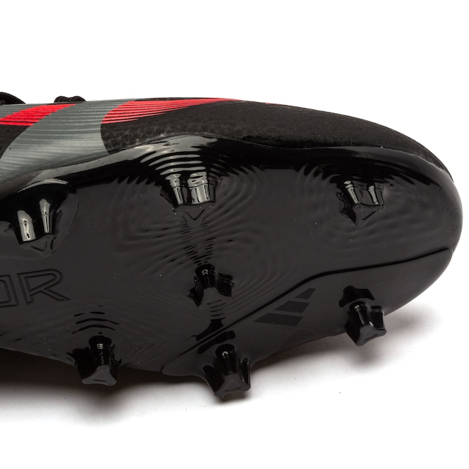 O cabedal sintético proporciona leveza e durabilidade, enquanto a tecnologia StrikeScale oferece um toque mais preciso na bola, aumentando o controle e a eficiência das jogadas. O solado TPU com travas altas garante tração ideal para arrancadas explosivas e mudanças rápidas de direção.