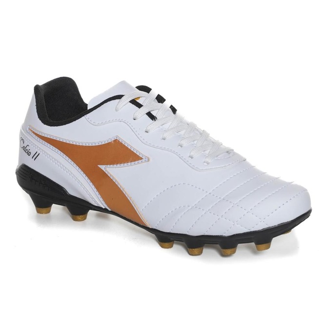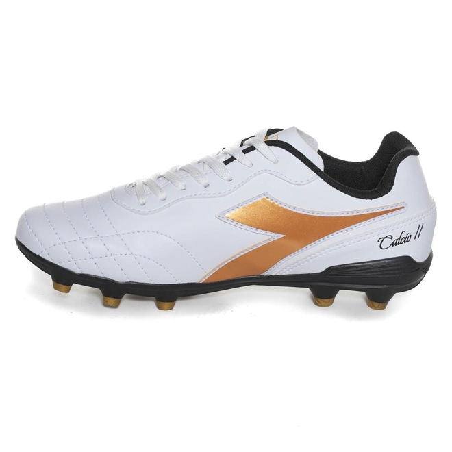 Chuteira Unissex Diadora Calcio II Campo Branco e Dourado: