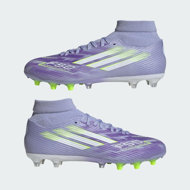Desenvolvida para ela. Jogue bonito em campo com a F50 Sparkfusion criada especialmente para atletas do sexo feminino. Esta chuteira adidas League tem cabedal macio Fiberskin para conforto, durabilidade especialmente moldada para ajuste perfeito e solado Sprintplate Fusion que oferece suporte à biomecânica feminina. O resultado? Calçados que vão ajudar você a atingir seu potencial máximo em campos firmes ou em grama artificial.