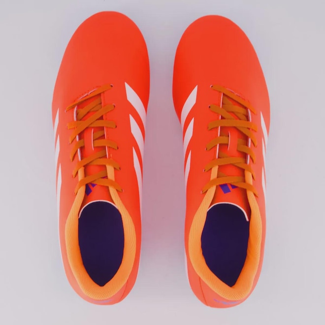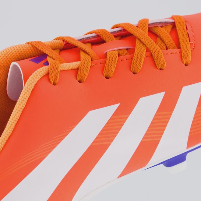 Composição cabedal (parte superior): Produzido em material sintético Palmilha: Em EVA e removível; facilita na higienização do produto Solado: TPU com travas altas, fixas e multidirecionais Forro: Material têxtil levemente acolchoado Cor predominante: Laranja Lingueta: Fina e flexível Indicado para: Campo Gênero: Masculino Origem: Nacional Ajuste: Cadarço Peso aproximado: 380g o par n° 40