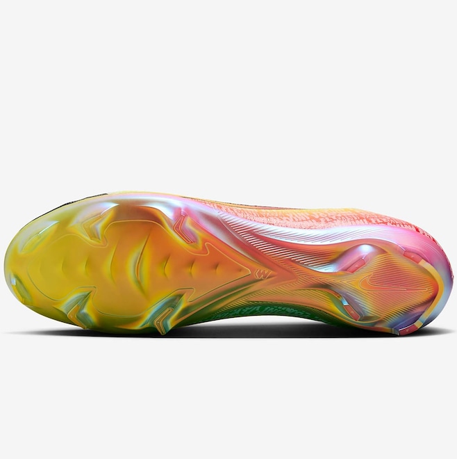 O design gradiente da sua Vapor 16 Elite mistura cores do seu clube de estreia com as da seleção brasileira — onde ele começou e para onde está indo.