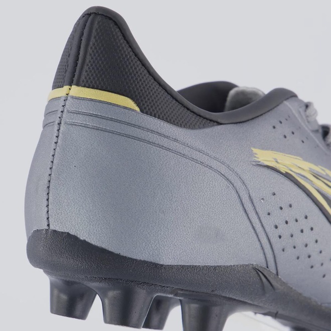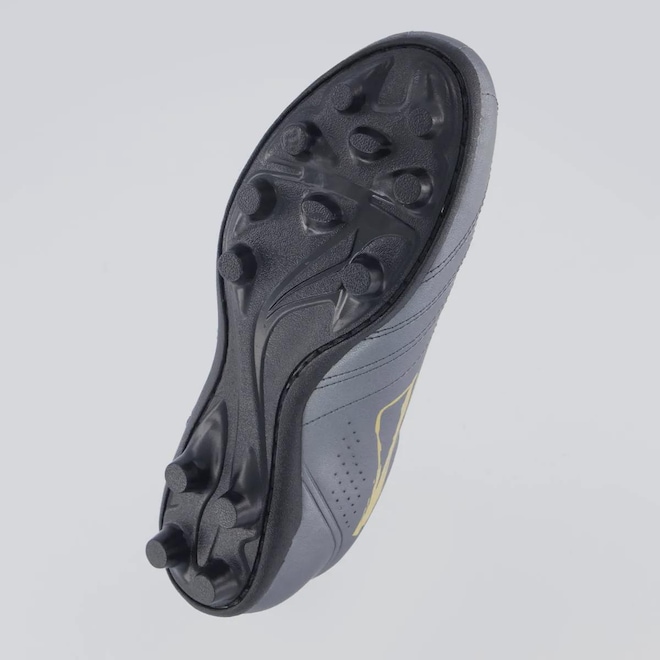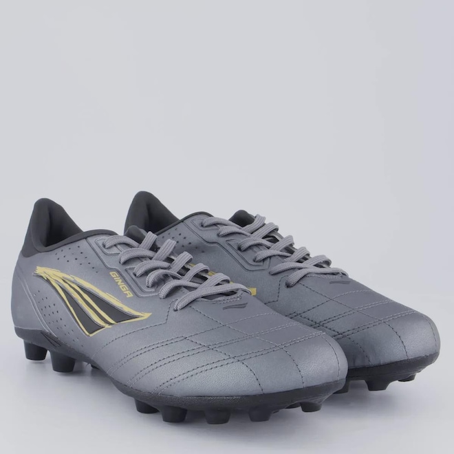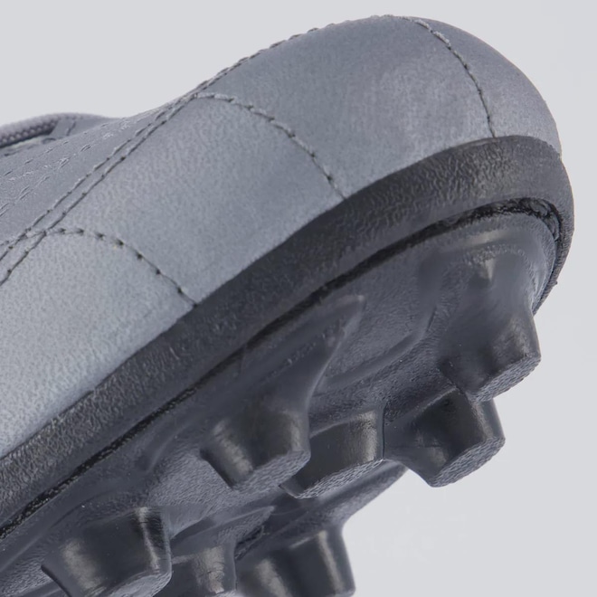 Composição cabedal (parte superior): Confeccionada em sintéticoPalmilha: EVA forrada e removível; facilita na higienizaçãoForro: Material têxtil com acolchoamento reforçadoSolado: PVC com travas altas e fixas, coladoLingueta: Fina e flexívelCor predominante: CinzaIndicado para: CampoGênero: MasculinoOrigem: NacionalAjuste: CadarçoPeso aproximado: 500g o par nº 40