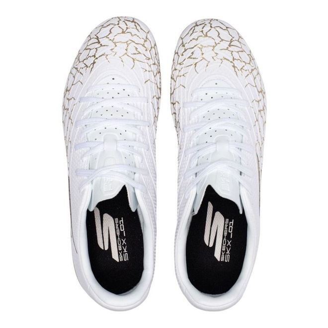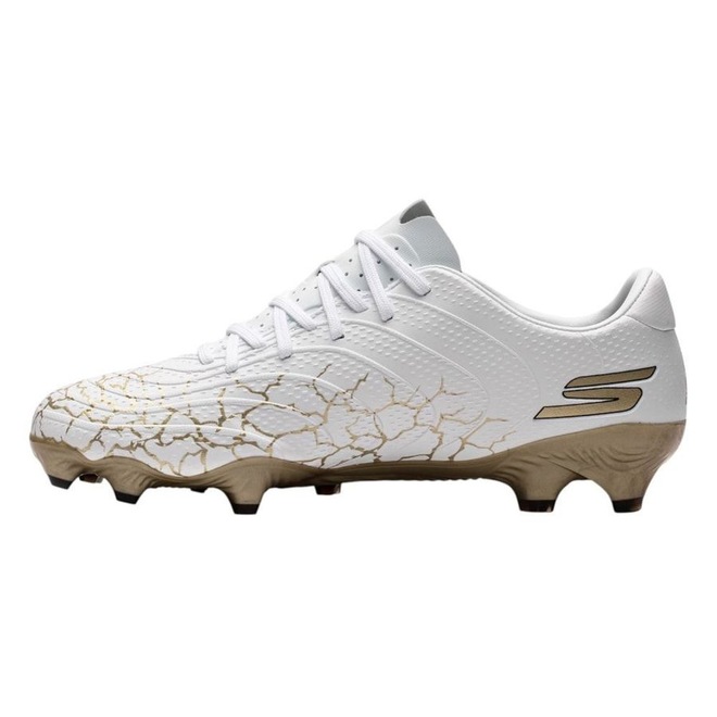 Domine os gramados com a Chuteira de Campo Skechers SKX1.5 Gold Masculina. Desenvolvida para jogadores que não abrem mão de performance, estilo e precisão, ela combina um design sofisticado com materiais resistentes e tecnologias que garantem estabilidade e conforto. O cabedal sintético é durável e leve, enquanto o forro acolchoado proporciona ajuste firme e respirável. A palmilha em espuma oferece excelente amortecimento, absorvendo impactos para maior proteção. Já o solado com travas emborrachadas garante tração superior e liberdade para jogadas rápidas e chutes certeiros. Um modelo que alia performance e elegância com detalhes em dourado que fazem a diferença em campo.