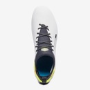 O cabedal em tecido elastizado e estruturado proporciona um ajuste perfeito ao pé, enquanto o colarinho garante suporte adicional. A tela texturizada frontal não só melhora a estética, mas também aumenta a aderência e o controle da bola durante as jogadas. As áreas de reforço fusionadas oferecem durabilidade sem comprometer a leveza do calçado.