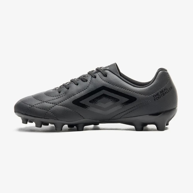 A Chuteira Campo Umbro Class Footballer é um modelo consagrado que chega com um visual renovado e aprimorado. Indicada para jogadores de nível intermediário que buscam qualidade e conforto para se destacarem em campo, a chuteira possui cabedal confeccionado em material laminado com textura de couro relax. O design inclui aplique gráfico em serigrafia e o logo Diamante centralizado na lateral, com costuras programadas em desenho clássico que garantem um acabamento sofisticado. A palmilha interna é macia, feita em EVA e forrada com tecido, proporcionando maior conforto. O solado de campo FG conta com 14 travas em PVC, apresentando um design minimalista e costura de reforço na parte frontal. INFORMAÇÕES TÉCNICAS: CABEDAL: 100% SINTÉTICO FORRO: 100% POLIÉSTER PALMILHA: 90% EVA 10% POLIÉSTER SOLA: 100% - PVC Medidas Aproximadas (Tamanho Palmilha): 37: 24,0 cm 38: 25,0 cm 39: 25,5 cm 40: 26,5 cm 41: 27,5 cm 42: 28,0 cm 43: 29,0 cm 44: 30,0 cm 45: 30,8 cm 46: 31,7 cm .