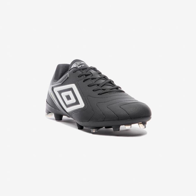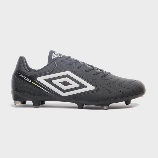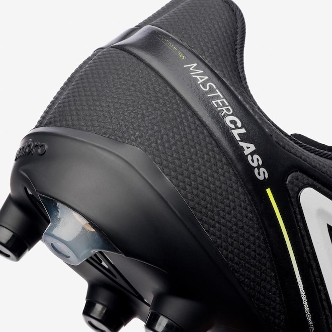 A Chuteira Campo Umbro Master Class Club une tradição e funcionalidade em campo. O cabedal assimétrico em laminado com textura emborrachada apresenta costuras programadas nas linhas de flexão, grafismo exclusivo e Diamante Umbro na lateral. Possui palmilha em EVA conformado com tecnologia SOFT BLUE e solado FG com 12 travas bicolores em TPU, garantindo tração e estabilidade durante o jogo.