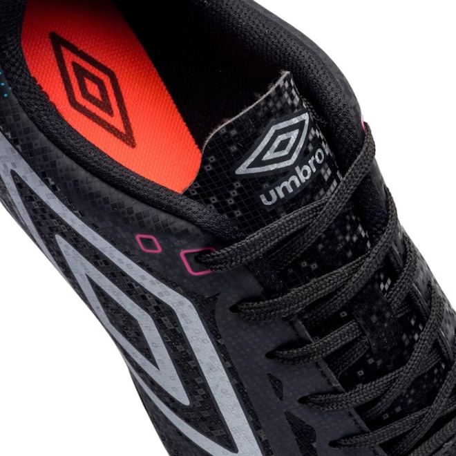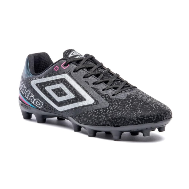 A Chuteira Campo Umbro Techno II é a escolha ideal para jogadores jovens que buscam um design moderno e ousado, com inspirações tecnológicas e visuais arrojadas. Produzido em material com efeito pixel em acabamentos fosco e brilhante, o modelo destaca-se pelo seu visual inovador. O cabedal é confeccionado em material laminado com textura plana e efeitos de contraste, combinando grafismo em serigrafia e elementos em cores contrastantes, com o Diamante Umbro em destaque na lateral externa. A palmilha interna, macia em EVA e forrada em tecido, oferece conforto durante o jogo. O solado de campo FG, com 14 travas em PVC e design minimalista, conta com costura de reforço na parte frontal.